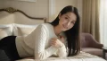 はだけた女性がベッドで朝日を浴びながら横になっている