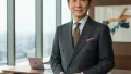 50代経営者の日本人男性が、高級レストランで20代女性と和気あいあいと食事をしている画像